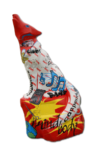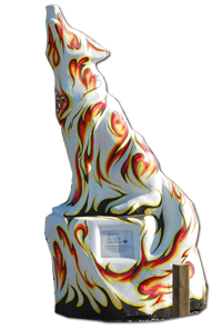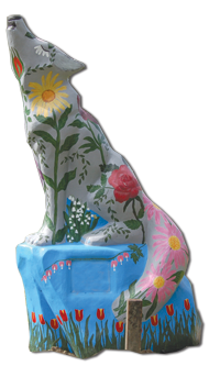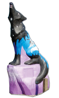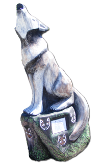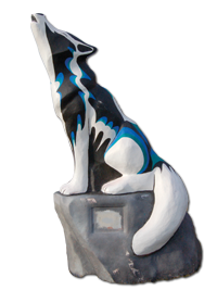 Message: This wolf is a tribute to our students: past present and future. The success of our students is reflected in the strength of our community, our pride in their achievement, and the realization of their goals.