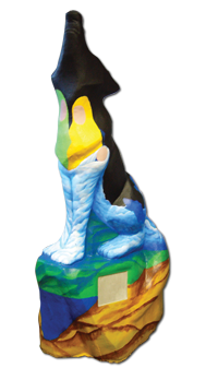 Message: The wolf has a solar panel located on the top of its head to absorb the daily sun’s rays. In the evening or when it is dark, Eliodoro’s eyes will light up, giving off a soft glow… a “gift of sun” for the present and future Thompsonites to enjoy. It will have bright eyes for our future!